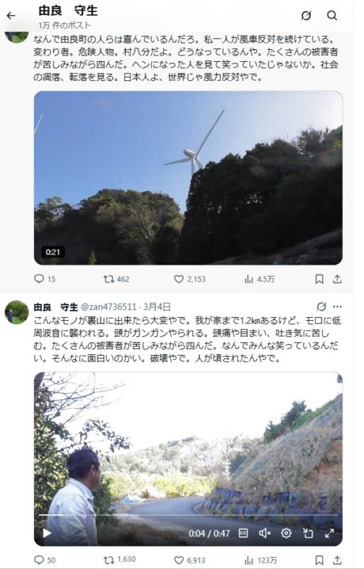 アホラシ連中よ。Xでは久しぶりにミリオン100万人の視聴数になっていた。日本全国で同じ風力被害が明らかになっている。誰も【止めろ】「Stop wind turbines !」の言葉がない。日本は滅ぶね。私もその日本人の一人として凋落の経緯を見てきた。嘘八百の政治や行政の悪を見た。人の不幸が面白い。分断、孤立化、オチョクリ、呪いの町よ。春にはまだ早いか。