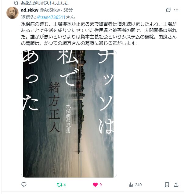 精神疾患とか、更年期障害とか、耳の障害者だとか、ひどい弾圧を受けているんでしょ。町民らは笑って喜んでいる。この辺の民衆の真意は、ただの奴隷だ。私の家柄意識が、ますます先鋭化する。先祖の由良守應が、なんで安政の大獄で牢屋暮らしすることになったのか、和歌山から追放されたのかも分からない。罪状は残されているけど、差別民と不届き至極、と書かれている。今も昔も、お上のやり方だ。