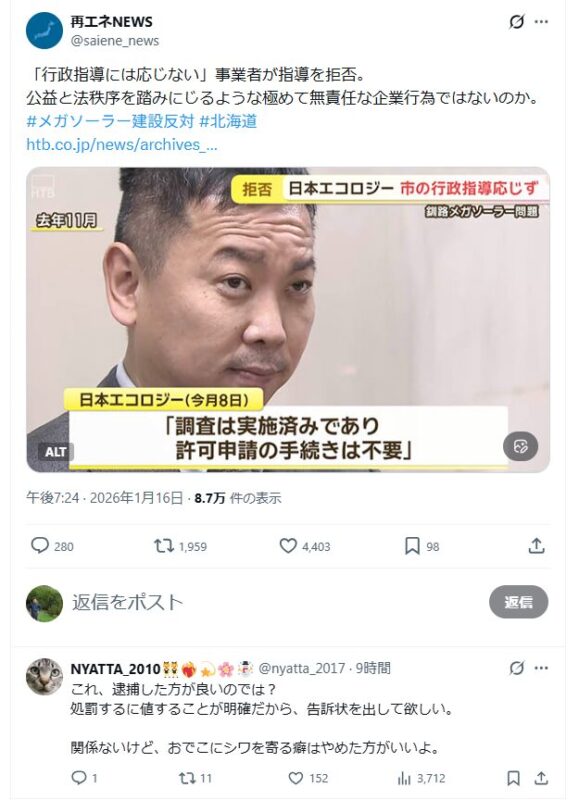 刷り込まれたセリフだけを繰り返す。視察に来たジャーナリストたちも、他の被害地と比較して、まったく同じ惨状にバンザイしていたのだ。結局、山本節子女史にあってから、以降の風力反対の機運はどこにもない。GX予算150兆円の威力だね。カネと支配が覆っている。死んだ被害者は哀れだね。言葉を持てなかった。意志も思考もなかったんかい。だからバカにされたんかい。今も同じ被害を見ているけど、